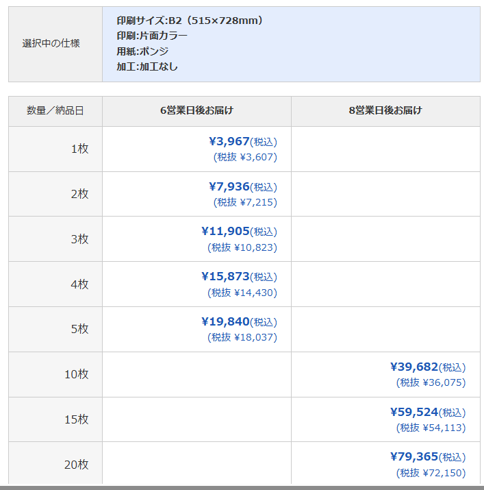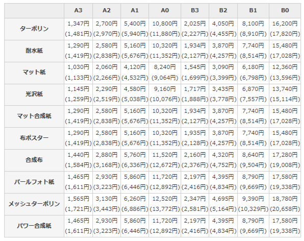 | プリオ(㈱オーレ) | 1枚¥3,090~ | 最短当日発送あり | ¥0(大型¥1,500) | 大判専門・当日可 |