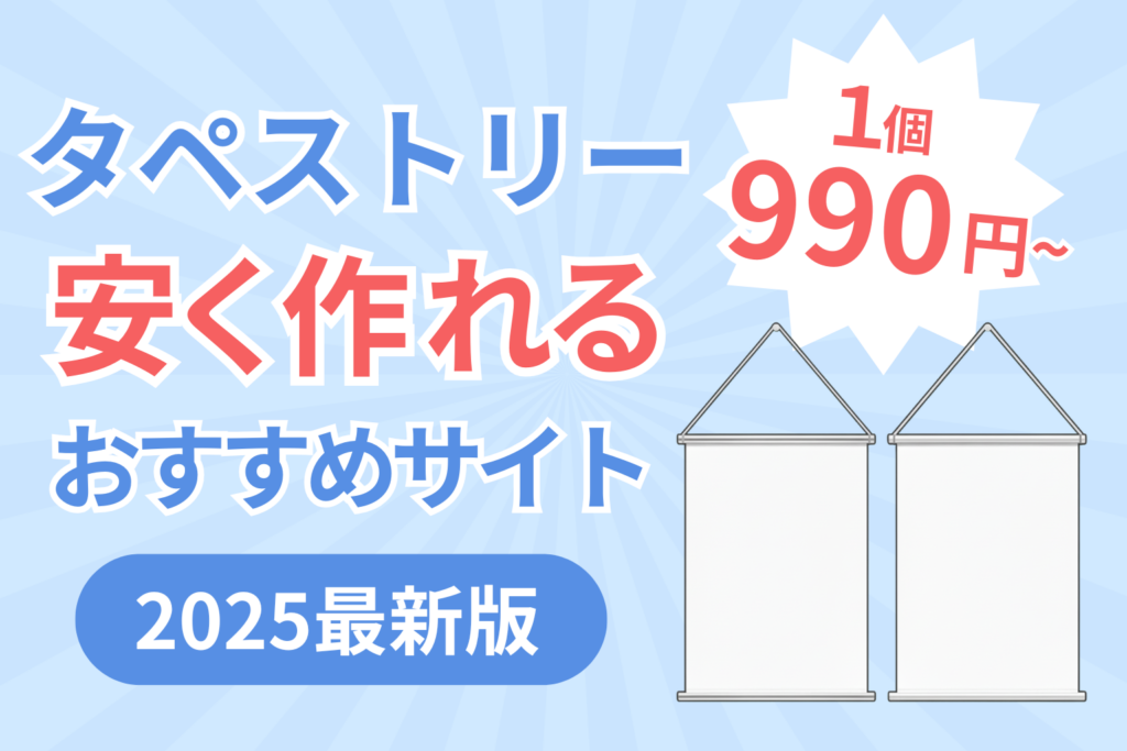 オリジナルのタペストリーを作りたいけど、「できるだけ安く」「小ロットで」「クオリティも妥協したくない」…そんな人のために、タペストリーが格安で作れるネット印刷・制作サービスを徹底調査しました。今回は価格・納期・小ロット対応・品質などの観点から、おすすめのサイトを比較紹介します。記事後半ではサービス選びのチェックポイントや、よくある質問にもお答えします。